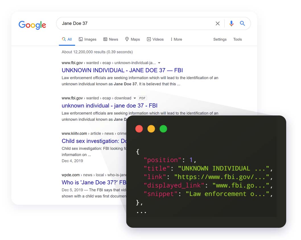 Verify that a person is who they claim to be. Check an individual's employment history, education, criminal record, and other past activities using SerpApi in order to confirm their validity.