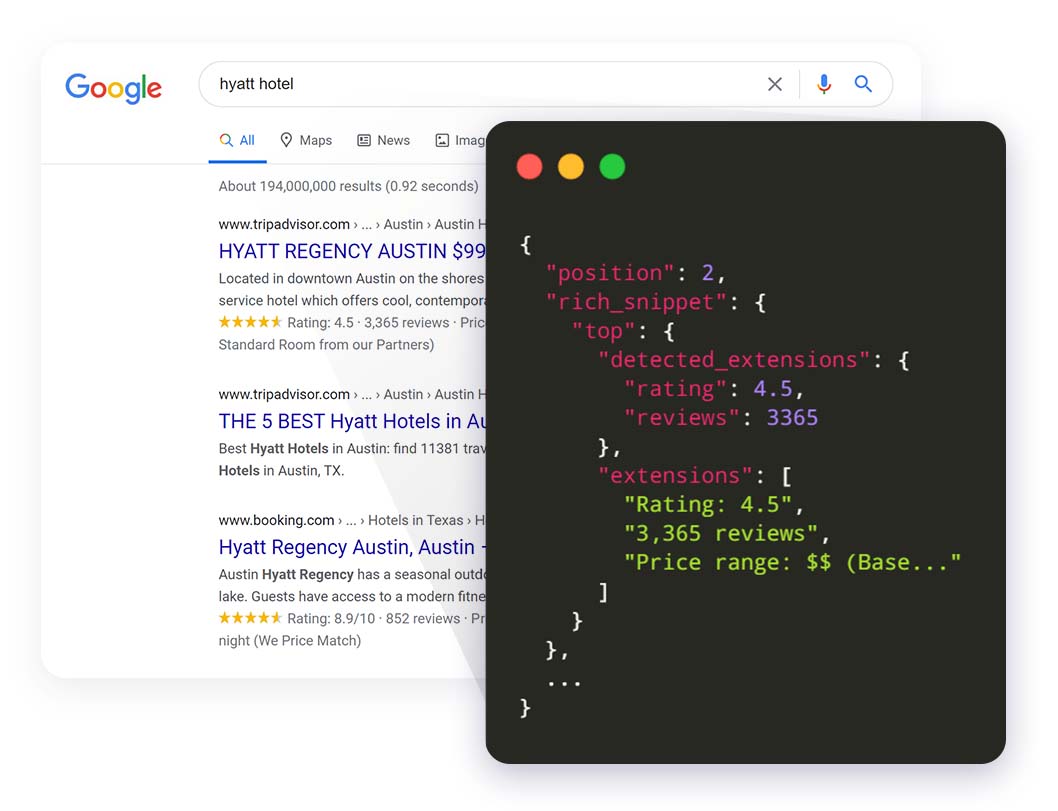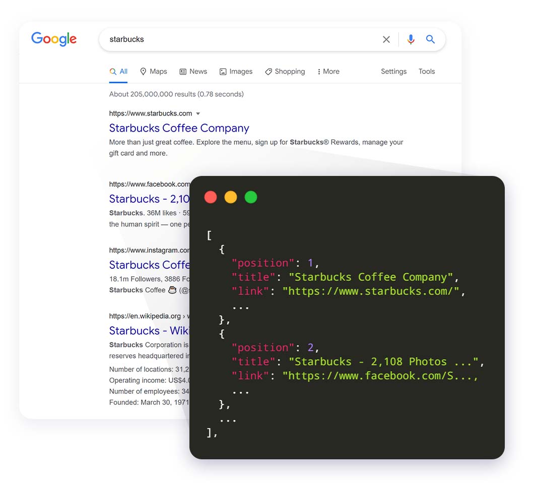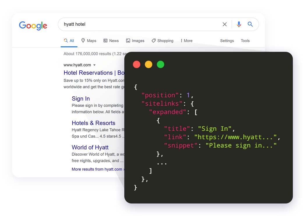 Track rankings of your domains using our Google, Baidu, Bing, Yahoo, and Yandex organic results API
